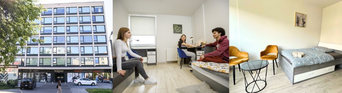 Do dyspozycji studentów jest 30 w pełni wyposażonych mieszkań: jedno- lub dwuosobowych, każde z prywatną łazienką i aneksem kuchennym. Idealne warunki do nauki, odpoczynku i codziennego życia. A dla bezpieczeństwa – całodobowa ochrona.