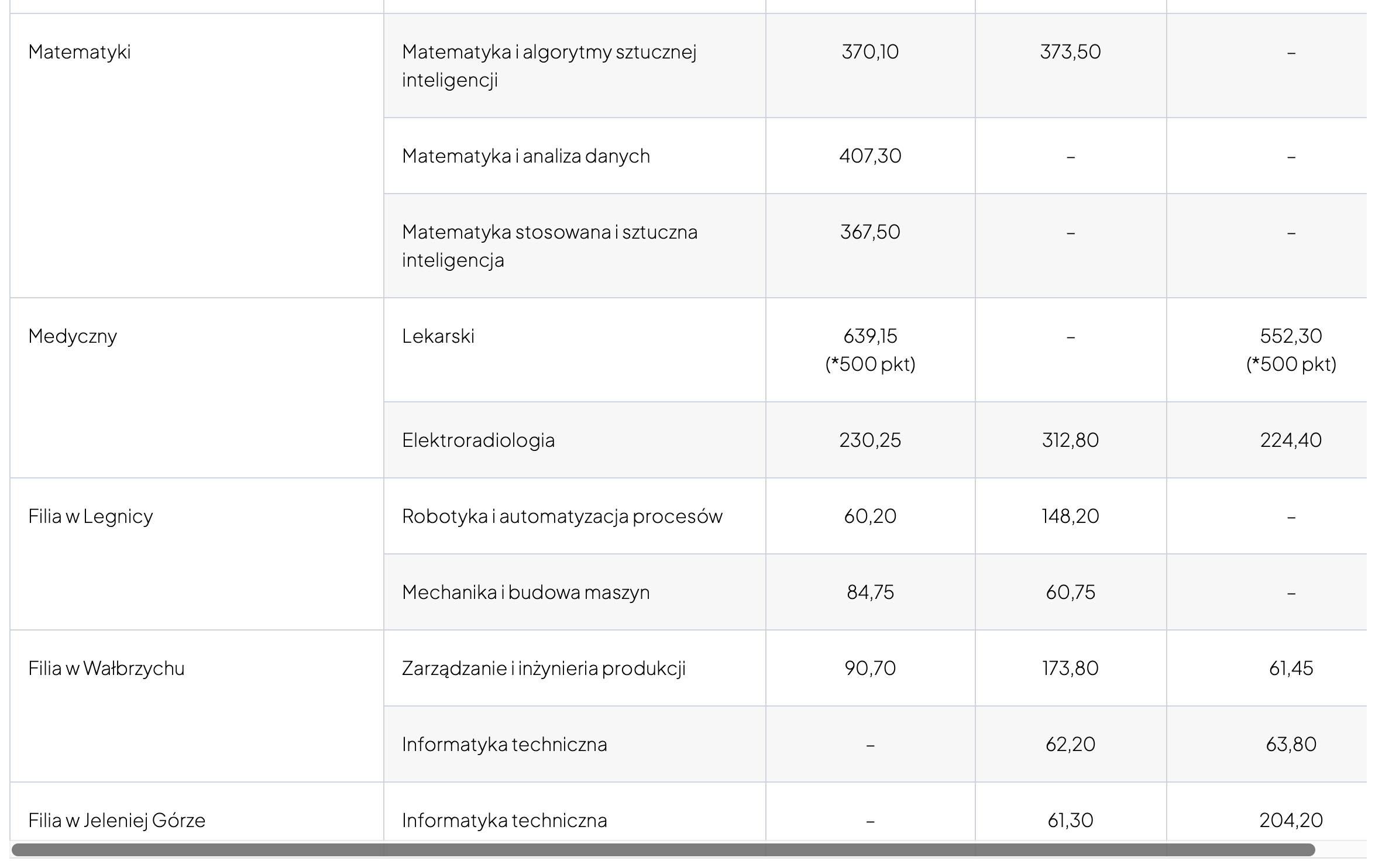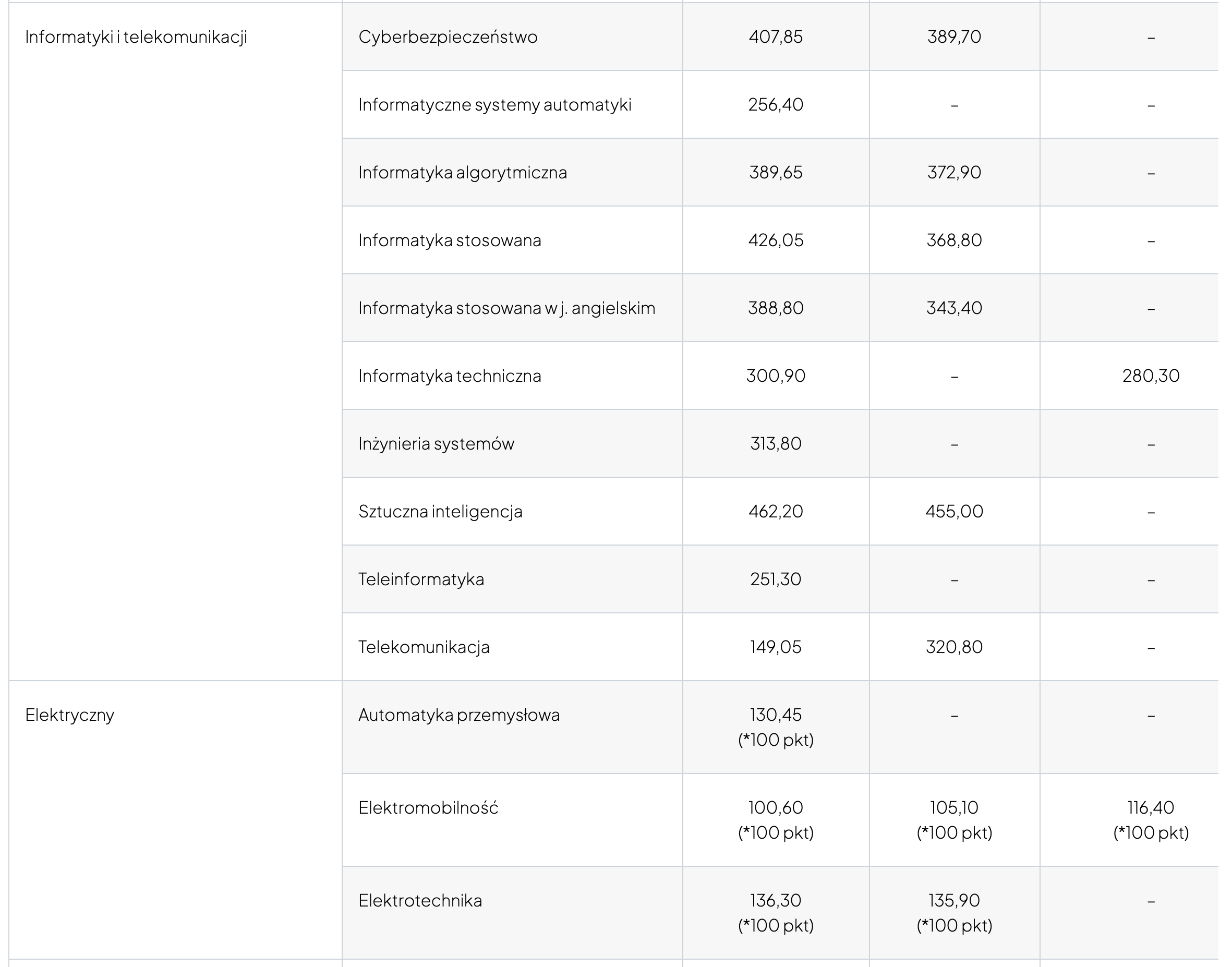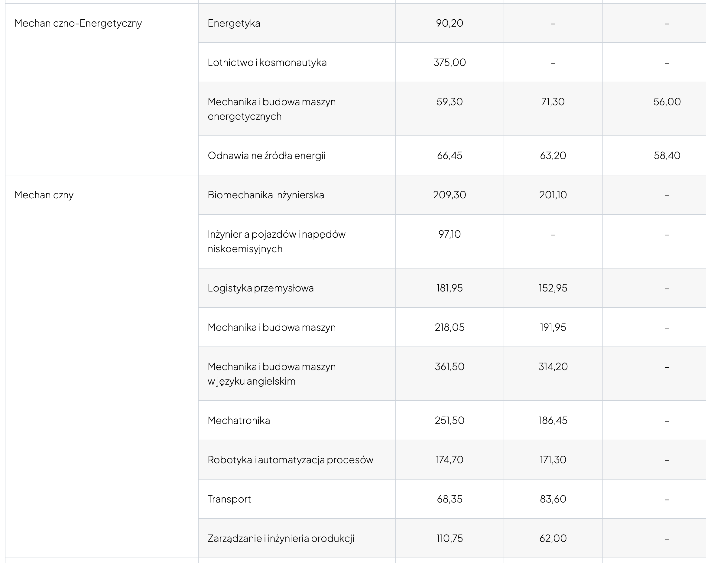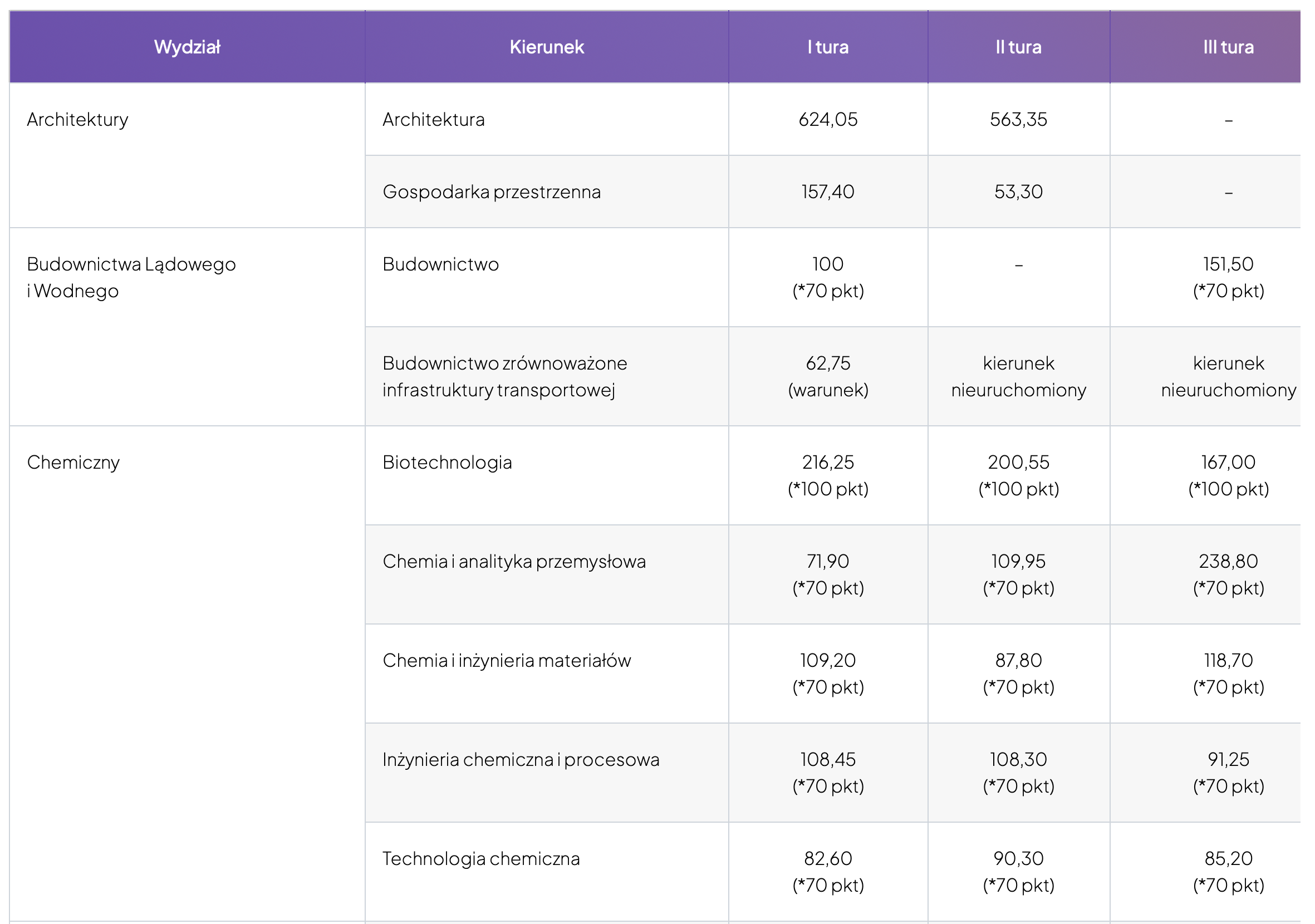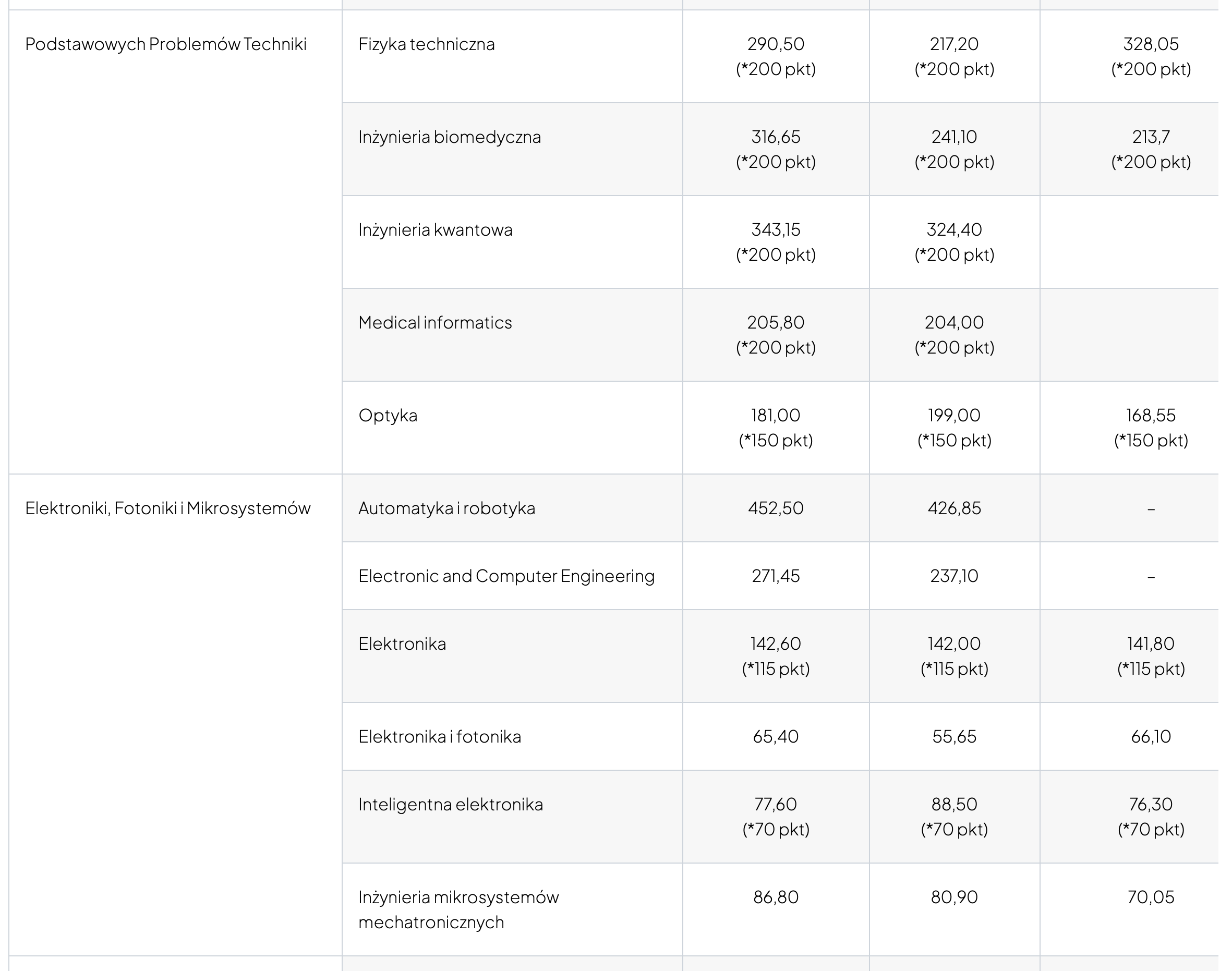 uczelnia publiczna, 50-370 Wrocław, ul. Wybrzeże Wyspiańskiego 27, (+71) 320 27 78, rekrutacja@pwr.wroc.plProgi punktowe - Politechnika Wrocławska