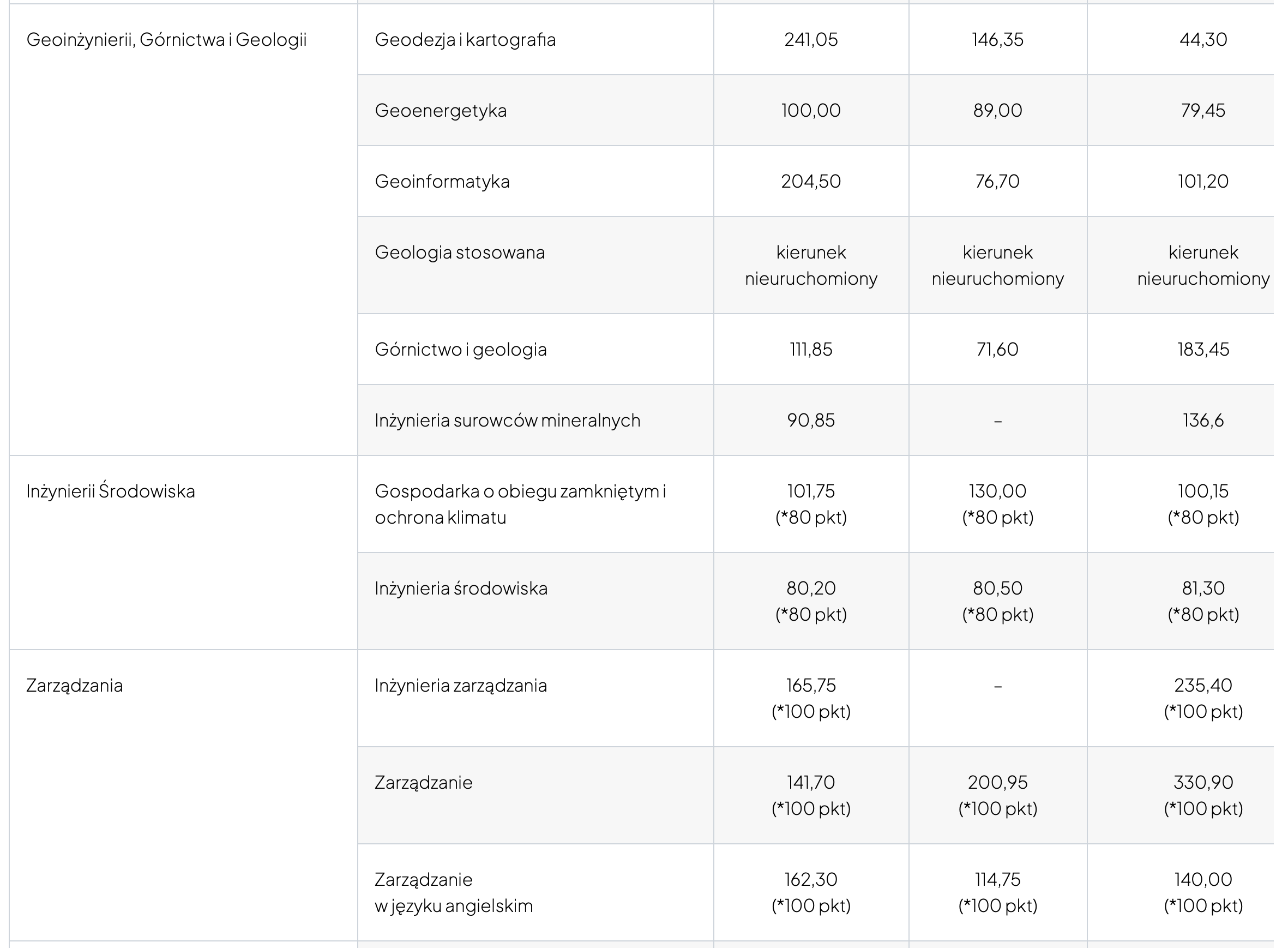 Progi punktowe z poprzednich lat dostępne są na stronie Uczelni.