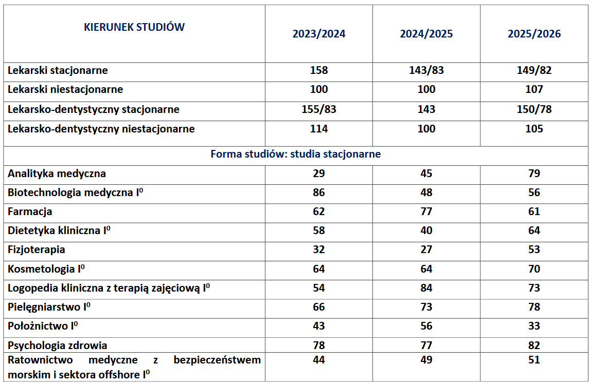 Progi punktowe - Pomorski Uniwersytet Medyczny w Szczecinie