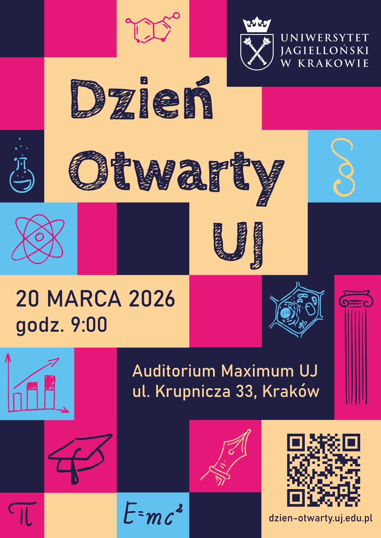 W piątek 20 marca 2026 r. Uniwersytet Jagielloński zaprasza uczniów szkół średnich na stacjonarny Dzień Otwarty.
