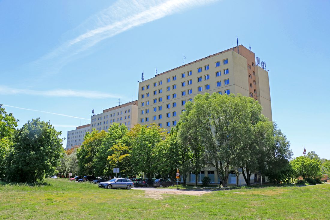 Jurand, Danuśka i Maćko to trzy wysokie akademiki zlokalizowane przy ul. Piątkowskiej 94, w których może zamieszkać nawet 1500 studentów. Do wyboru masz pokoje jedno-, dwu- i trzyosobowe, a na każdym piętrze czekają ogólnodostępne kuchnie. Do dyspozycji mieszkańców są też pralnie, suszarnie, pokoje nauki i miejsca do wspólnego spędzania czasu. Internet? Jasne – dostępny bezpłatnie. A po nauce? Możesz pograć na boisku, odpocząć przy grillu albo zostawić rower w zadaszonej wiacie.